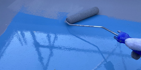 防水性の高い塗料を使い、厚い層になるように塗装していきます。